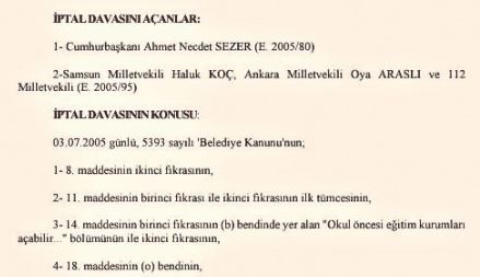 Avukat Hadi Dündar ise şu açıklamalarda bulundu: “2007 yılında CHP’li 114 milletvekilinin başvurusuyla Anayasa Mahkemesi ‘Okul öncesi eğitim kurumları açabilme’ hükmünü iptal etti. Gerekçe ‘Belediyelere verilen görevin okul öncesi eğitim kurumlarının binalarını yapmaktan ibaret olabilir ama eğitimin içeriğini ve öğretmenlerin kimlerden oluşacağı kısmı net ve açık değil’ şeklinde idi. Hatta CHP başvuruda belediyelerce eğitim kurumlarının açılmasının laik eğitim sistemi ve ulusal birliğe aykırı olacağından iptal talebinde bulunmuştu. O tarihten bu yana belediyelerce açılan anaokulu ya da okullar kaçaktır. 80 milyondan fazla vatandaşın eğitim hakkı eşit ve Milli Eğitim Bakanlığı bünyesinde, denetiminde olmalıdır. Terörle ve sapkın akımlarla bağlantılı olan belediyeler de yarın anaokulu açarsa ne olacak.”
