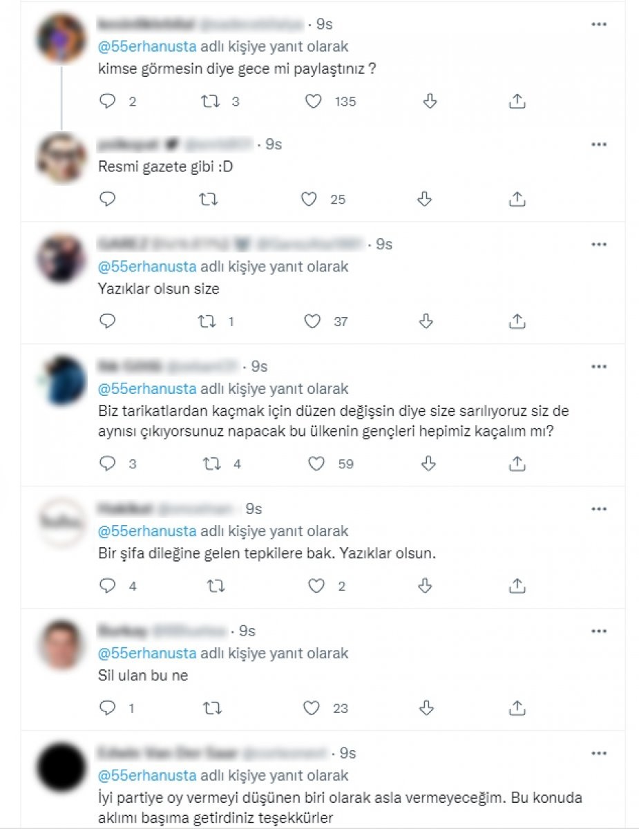 Ancak Usta'nın paylaşımı, parti ve ittifak tabanındaki laikçi seçmenin tepkilerine neden oldu. İYİ Parti'nin muhafazakar bir parti olmadığını belirten bir grup, "geçmiş olsun" mesajının altında, laiklik çerçevesinde mesajın derhal silinmesini talep etti.