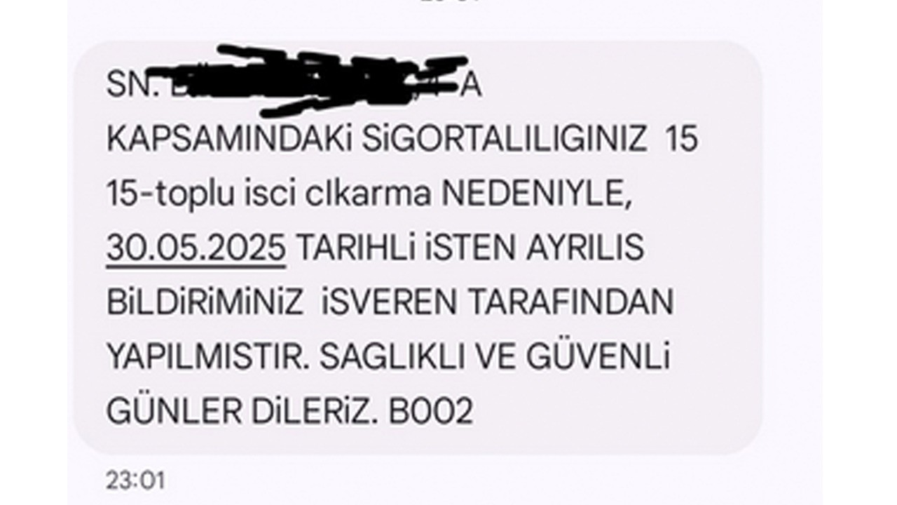 "1 Haziran gecesi SGK'dan gelen bir mesajla 30 personel "toplu işten çıkarma" uygulamasına maruz kaldığımızı öğrendik. Kurum amirlerimizle görüşüp durumu anlamaya çalıştık ancak telefonlarımıza bile cevap verilmedi. Bağlı bulunduğumuz Personel A.Ş.'yi arayıp maaş alacaklarımızın, tazminatlarımızın nasıl ödeneceği hususunda bir takvim talep ettik. Buna bile adeta bir suçlu imişiz gibi, 'Buraya gelmenizin ve bizi aramanızın bir anlamı yok. Alacağınız varsa yasal yollara başvurun' dendi. Bayram arefesinde parasız pulsuz sokağa atıldık. Sendikamız da suskun maalesef. CHP'nin tartışmalı kurultayından bu yana zaten ödemelerimiz devamlı aksatılıyordu. İki ay geriden maaş alıyorduk zaten. Birçok arkadaşımızın içeride 3 aylık maaş alacakları var. İşten atılanlar arasında 24 yıldır belediyede çalışan arkadaşlarımız var. Bize yapılan bu çirkin muameleyi hak etmedik"