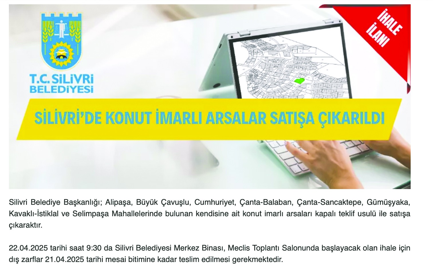 Geçtiğimiz aylarda kişiye özel imar değişikliği yapıp yandaşlarına rant devşirerek dere yatağının yönünü değiştiren CHP’li Silivri Belediyesi de partilileri gibi taşınmaz satışına başladı. Başkanlık koltuğunda Bora Balcıoğlu’nun oturduğu Silivri Belediyesi, toplam 20 bin 168 m2 arsa nitelikli taşınmazları elden çıkaracak. CHP’li Silivri Belediyesi, ilçede Alipaşa, Büyük Çavuşlu, Cumhuriyet, Çanta- Balaban, Çanta -Sancaktepe, Gümüşyaka, Kavaklı – İstiklal mahallelerinde bulunan konut imarlı arsa vasıflı taşınmazları 146 milyon 306 bin TL muhammen bedelle 22 Nisan tarihinde gerçekleştireceği ihale ile satacak.