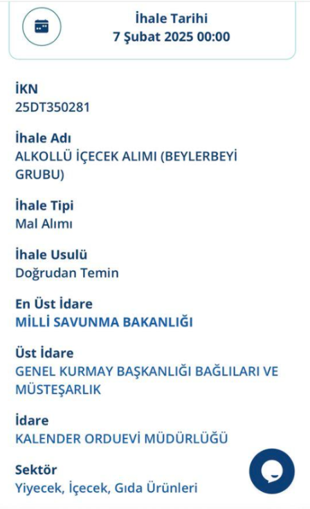 Paylaşılan belgelerde, Kalender Orduevi Müdürlüğü’nün "doğrudan temin" yoluyla alkollü içecek aldığı görülüyor. Avcılar Belediyesi’nin ise açık ihale ile bu işi "resmileştirdiği" savunuluyor.