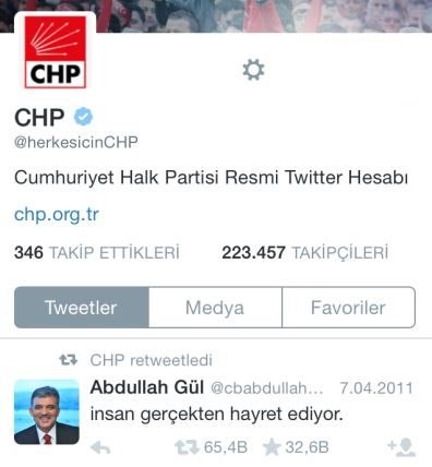 Taraflar arasındaki polemiğe CHP de katıldı. Ancak CHP'den yazılı ya da sözlü açıklama gelmedi. Partinin resmi twitter hesabından, 11'inci Cumhurbaşkanı Abdullah Gül'ün 7 Nisan 2011 tarihinde yani 4 sene önce paylaştığı "İnsan gerçekten hayret ediyor" tweeti retweet edildi.