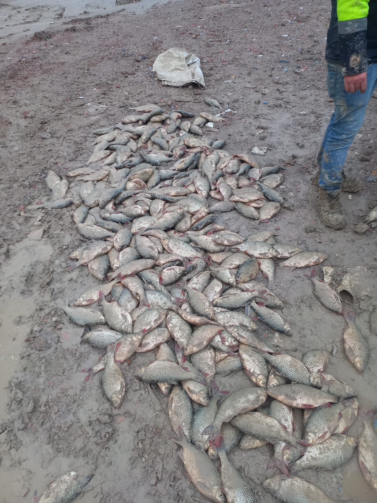 Suyun yerini alan çamur tabakasında binlerce balık oksijensiz kalarak yaşam mücadelesi verdi. İşçiler tarafından kaydedilen görüntülerde, balıkların balçık içinde çırpındığı ve su arayışı içinde oldukları görüldü.