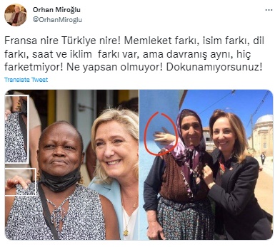 25. ve 26.Dönem AK Parti Mardin Milletvekili Orhan Miroğlu ise Le Pen ile Nazlıaka'nın karelerini birleştirerek şu yorumu yaptı:
