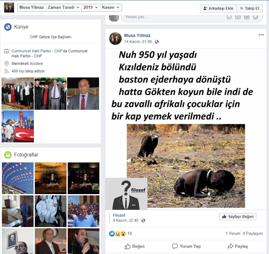 CHP'nin Gebze İlçe Başkanı Musa Yılmaz, sosyal medyada peygamberleri ve Allah'a yönelik çirkin ifadelerin bulunduğu skandal bir paylaşım yaptı.