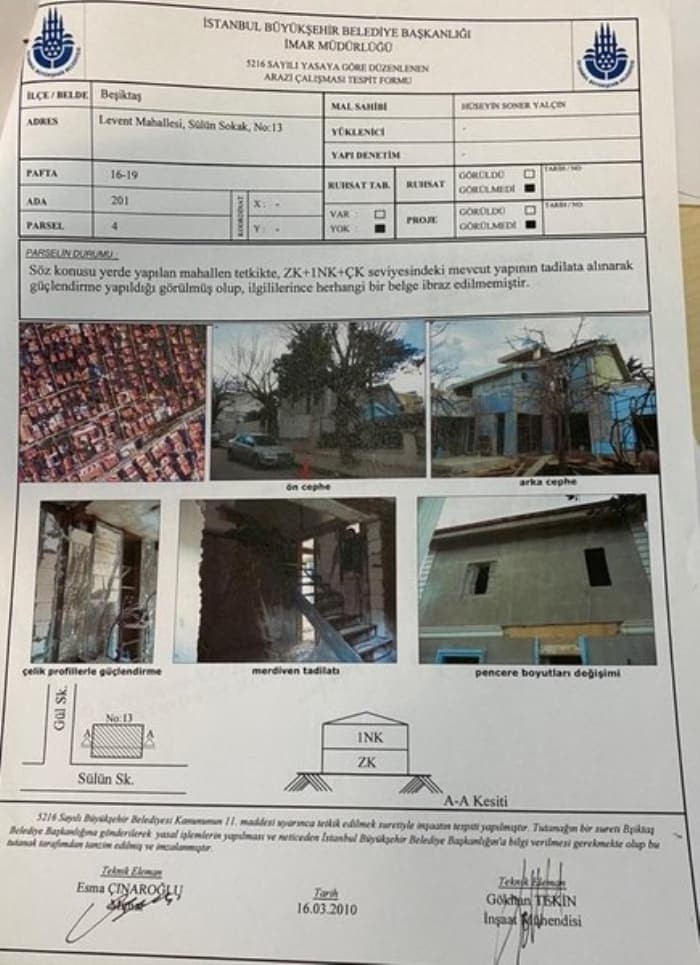 Karanlık Oda TV'nin sahibi Soner Yalçın'ın Levent'teki SİT alanındaki 30 milyonluk villası ile ilgili yeni detay ortaya çıktı. Dönemin AK Parti yönetimindeki İBB yapılan kapsamlı tadilat belgesi ibraz edilemediği için tutanak tutarken, CHP'li Beşiktaş Belediyesi “basit tadilat” diyerek yasadışı inşaatı ört bas etmek istedi.