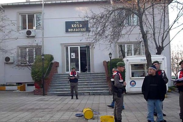 Koçhan, yanındaki testere ile başkanın makam odasının kapısını kesmeye başlayınca Koru'nun CHP'Li Belediye Başkanı Kamil Yaman, camdan uzatılan merdivenle kaçtı.