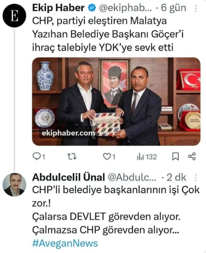 Kendi belediye başkanının yolsuzluk eleştirilerine kulak tıkamak bir yana, onu partiden atmaya kalkan CHP yönetimi, bir kez daha "ya bizdensin ya da düşman" mantığıyla hareket ettiğini gösterdi. Göçer’in ihraca sevk edilmesi, CHP çatısı altında dürüst siyaset yapmanın imkansız hale geldiğini ve partinin yolsuzluk iddialarıyla yüzleşmekten köşe bucak kaçtığını bir kez daha kanıtladı.