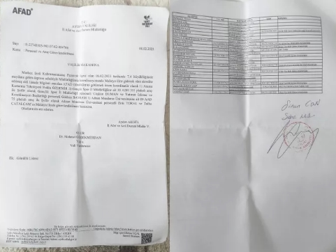 Valiliğin de onaylamasının ardından Can, Malatya'da enkaz altındaki vatandaşlarımızı kurtarma çalışmalarına katıldı.