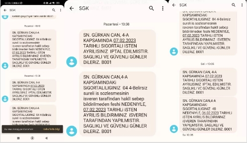 Konuya ilişkin Haber7’ye konuşan Gürkan Can, "Deprem bölgesinden geldiğim gün işten çıkarıldığımı öğrendim. Gelen mesajda Malatya'ya gittiğim tarihte yani 7 Şubat'ta işten çıkarıldığım yazıyordu. Daha sonra tekrar mesaj geldi "Sigortalı ayrılışınız ipttal edilmiştir" diye. Sonra tekrar bir mesaj geldi "48 nedeniyle işten ayrılışınız işveren tarafından yapılmıştır" diye" dedi.