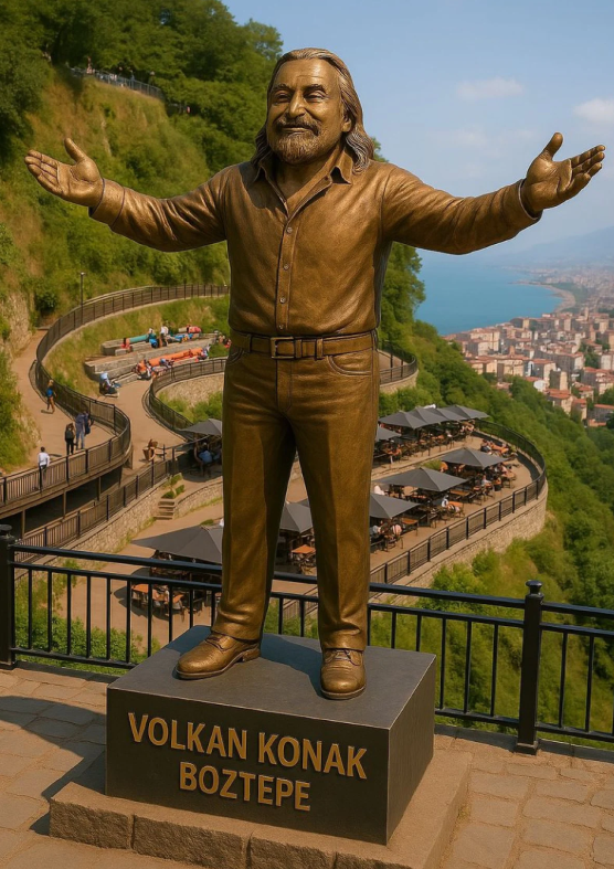 CHP'li Ortahisar Belediyesi, Boztepe Volkan Konak Seyir Terası’na Volkan Konak'ın heykelini yapacağını duyurdu. Heykelin görseli de belediye hesabından paylaşıldı.
