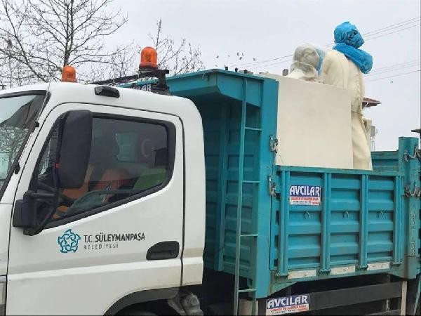 Süleymanpaşa Belediye Başkanı Ekrem Eşkinat, heykelin Edirne’de yaptırıldığını ve sadece belediyeye ait kamyonla taşındığını söyledi.