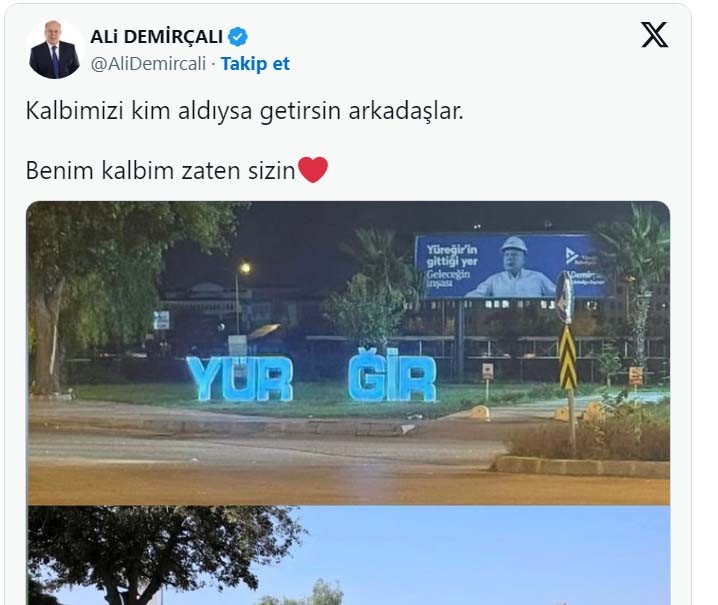 Belediye Başkanı Ali Demirçalı da sosyal medya hesabından yaptığı paylaşımda, "Kalbimizi kim aldıysa getirsin arkadaşlar. Benim kalbim zaten sizin” dedi. Şüphelilerin bulunması için çalışma başlatıldı.