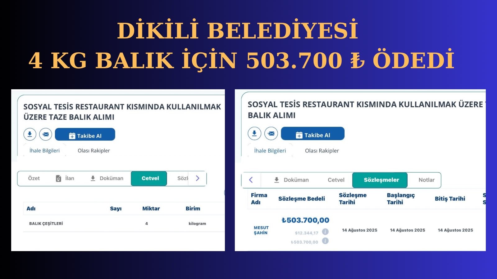 CHP’li belediyelerin peş peşe patlayan skandallarına bir yenisi daha eklendi. İzmir’in Dikili Belediyesi, Ağustos ayında yaptığı doğrudan teminle yalnızca 4 kilo balık için tam 503 bin 700 lira ödedi. Faturanın ise CHP’li Belediye Başkanı Adil Kırgöz ve milletvekillerinin sık sık gittiği Şahin Balıkçılık’a kesilmesi, tepkileri daha da artırdı.