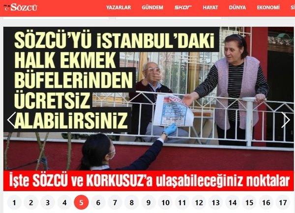 Türkiye koronavirüs salgını ile mücadele ederken, salgının yayılmasını önlemek için 31 ilimizde hafta sonunu kapsayacak şekilde 48 saatlik sokağa çıkma yasağı ilan edildi. Sokağa çıkma yasağının ilan edildiği şehirlerde vatandaş belediyelerden yardım talebinde bulunurken, CHP'li belediyeler ise vatandaşın talepleri yerine Sözcü Gazetesi'nin posta memurluğuna soyunarak kapı kapı gazete dağıttı.