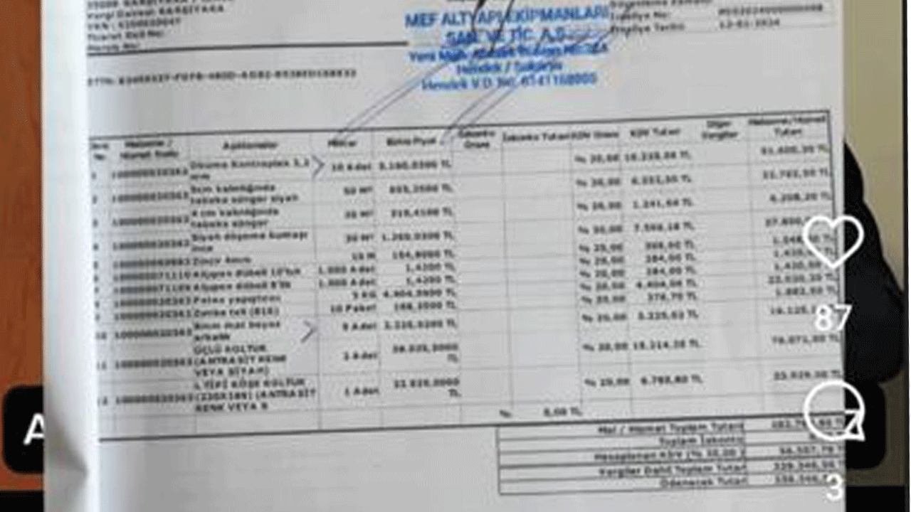 AK Partili Meclis Üyesi Özgür Solmaz, şunları kaydetti: "Mesela Sakarya'dan hırdavat malzemesi almışız. Bir firmadan 3 ayrı faturayla yaklaşık 650 bin liralık bir tedarik yapılmış. Örnek olarak Kontplak almışlar, tabakası 5 bin 160 lira, güncel fiyatı bin 200 lira. 49 liradan menteşe almışlar güncel fiyatı 16 TL. Toplamda bu firmadan geçen sene 650 bin liralık alım bugünkü fiyatlarla 200 bin liraya alınabiliyor. Yine geçen sene Ocak ayında İzmir'de herhangi bir hırdavatçı yokmuş gibi Sakarya'dan 44 bin 400 TL'ye alınan aynı marka bir el frezesinin bu seneki fiyatı 18 bin TL"