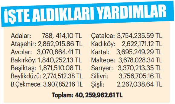 Akit’in elde ettiği veriler AK Parti Hükümetinin AK Partili ve CHP’li ilçelere giden yatırımlarda siyasi bir kayırma da yapmadığını ortaya koyuyor. FETÖ ile kirli ilişkiler içerisine giren Adalar Belediyesi; en düşük ayni yardımı olan belediye olarak kayıtlara geçerken, en yüksek ayni yardımı Büyükçekmece aldı. Avcılar Belediyesi; 3 milyon TL yardım aldı ancak Avcılar sokaklarından çöp kokuları hiç eksik olmadı. Canlarını dişlerine takıp çalışan ancak maaşlarını alamayan temizlik görevlilerinin iş bırakma eylemine gitmesi sonucu çöpler sokakta birikti. Avcılar’daki görüntüler, Erdoğan’ın her fırsatta dile getirdiği ‘CHP çöplük demektir’ sözünü bir kez daha doğruladı. LGBTİ’li ahlaksız kişilere destek olmak için adeta çırpınıp duran Şişli Belediyesi ise 2 milyon TL’yi aşkın ayni yardım aldı. Sokakları çöplerden geçilmeyen Şişli, milletin parasını eşcinsellerin sağlık hizmetlerine harcadı.