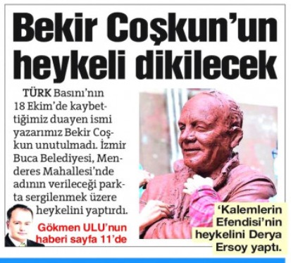 Meslek kariyeri boyunca İslam’a ve Müslümanlara saldıran ve son olarak Sözcü’de köşe yazan Bekir Coşkun 18 Ekim’de öldü. Coşkun’un ölümünün ardından CHP’li Buca Belediyesi, aynı idealleri paylaştığı Bekir Coşkun’un heykelini dikme kararı aldı. Buca’da yeni yapılan 4 bin metrekarelik parka konulmak üzere, Bekir Coşkun’un 2 metrelik heykelinin yapımına başlandı.