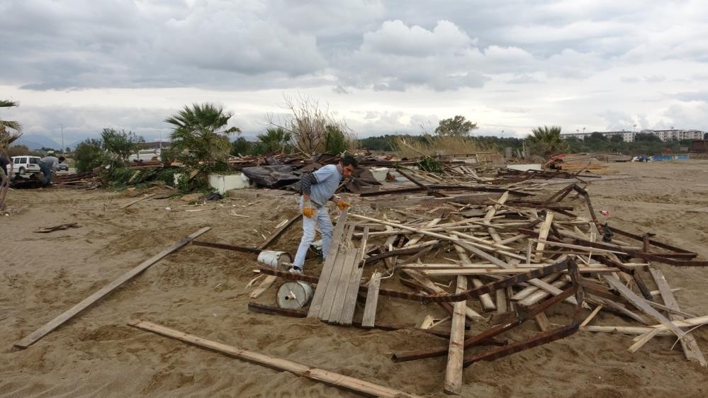 Antalya'nın Manavgat ilçesinde Side büyük plajda bulunan 15 günübirlik işletme Kültür ve Turizm Bakanlığı'nın yıkım kararı doğrultusunda işletme sahipleri tarafından yıkıldı.