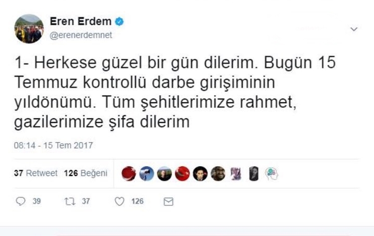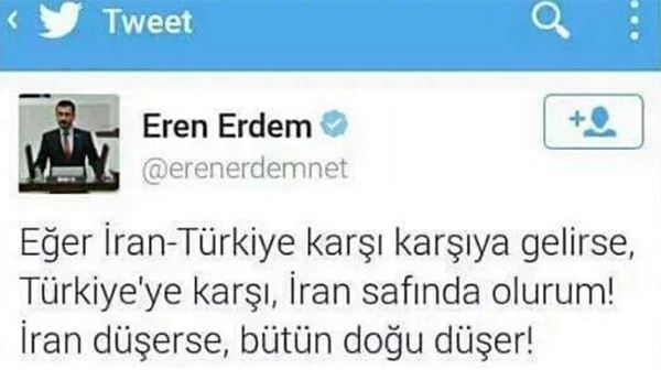 Eğer Türkiye ile İran arasında savaş çıktığı takdirde İran'ın tarafını tutacağını söyleyen CHP İstanbul milletvekili Eren Erdem 15 Temmuz alçak darbe girişimine sahip çıktı.