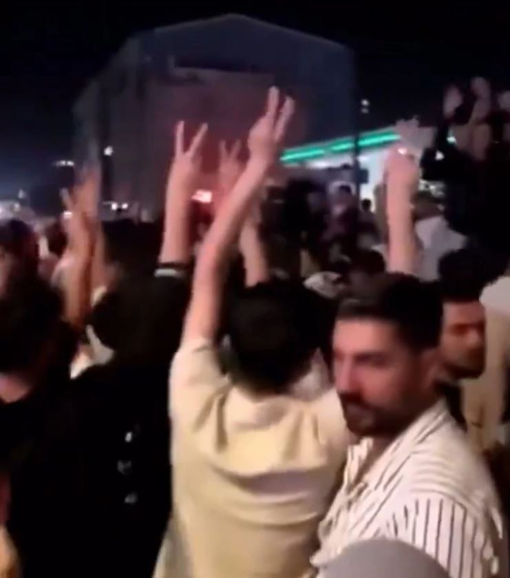 Terör örgütü sempatizanlarının elleriyle özgürlük işareti yaparak "Biji Apo" sloganları attıkları an, cep telefonu kamerasına yansıdı.