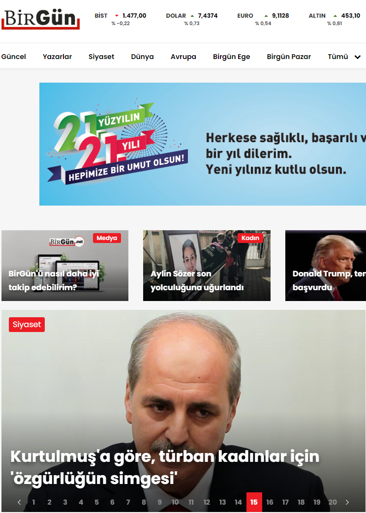 AK Parti Genel Başkanvekili Numan Kurtulmuş'un, 'Başörtüsü, Müslüman kadınlar için özgürlüğün simgesidir' sözlerini kırparak başlığında, 'Kurtulmuş'a göre türban kadınların özgürlüğünün simgesi' ifadelerini kullanan Birgün, başörtüsüne olan düşmanlığını bir kez daha gözler önüne serdi. Her gün manşetine taşıdığı en az bir haberle sözde kadın hakkı savunuculuğuna soyunan Birgün, ikiyüzlülüğünü tescillediği haberinde, "Kurtulmuş, türbanın Müslüman kadınlar için 'özgürlüğün simgesi' olduğunu öne sürdü." ifadeleri ile Müslüman kadınlara olan düşmanlığını tescilledi.