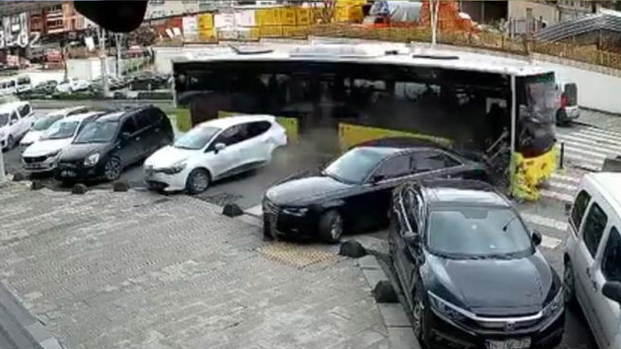 Çarpma anı ise bir iş yerinin güvenlik kamerasına yansıdı. Görüntüde, İETT otobüsünün seyir halindeyken park halindeki otomobillere çarptıktan sonra durduğu anlar yer alıyor.