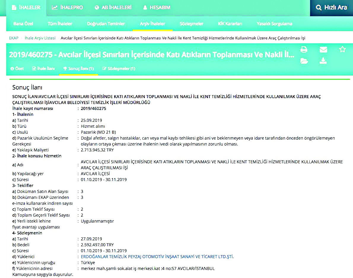31 Mart seçimleri öncesinde CHP’den Avcılar Belediye Başkan Aday Adaylığı başvurusu yapan iki isimden biri olan Turan Hançerli seçimi kazanırken Bahattin Erdoğan ise ihalelerde hep bir adım öne çıkmayı başardı. CHP’nin Avcılar Belediye Başkanı olan Turan Hançerli, seçimler öncesinde aynı partiden adaylık başvurusu yaptığı Erdoğan’a ait temizlik firmasını her fırsatta kolladı. 27 Ekim tarihinde yapılan “Avcılar ilçesi sınırları içerisinde katı atıkların toplanması ve nakli ile kent temizliği hizmetlerinde kullanılmak üzere araç çalıştırılması işi” ihalesi, partizanca bir tutumla CHP’li yoldaşına bırakıldı.