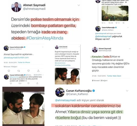 PKK’yı öven paylaşımları ortaya çıkan ve CHP’li İzmir Belediye’nin organizasyonlarını yapacak olan HDP’li Ahmet Saymadi’nin PKK terör örgütü ile skandal paylaşımları ortaya çıkmıştı. Bu kez Saymadi’nin CHP İstanbul İl Başkanı’nı övdüğü ‘yoldaş’ dediği tweetleri belirlendi. Kaftancıoğlu’nun da 2016 yılında Saymadi’ye “Sokaktan kaldırsınlar cenazelerimizi be Ahmet. Yıllarca dinsiz yaşa, sonra git dini ritüellere boğul. (bu da benim vasiyet)” dediği tespit edildi. Gündem olan bu tweet CHP’li Kaftancıoğlu tarafından silindi.