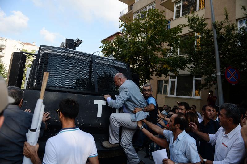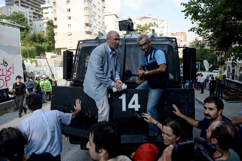 Bu sırada grubun arasında bulunan CHP Milletvekili Mahmut Tanal da ilerlemesini engellemeye çalıştığı zırhlı aracın üzerine çıkarak kısa bir basın açıklaması yaptı. Yürümekte ısrar eden gruplara polis müdahale etti. Müdahale edilen gruplar ara sokaklara kaçarak dağıl