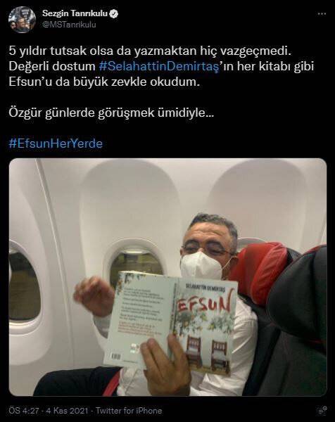 CHP İstanbul Milletvekili Sezgin Tanrıkulu, Muş'ta yer alan Şenyayla Askeri Üssü'nde görev yapan askerleri ziyaret ettikten bir gün sonra, terör soruşturması kapsamında tutuklu bulunan HDP'li Selahattin Demirtaş'ın kitabının reklamını yaptı. Demirtaş'tan 'Değerli dostum' diye bahseden Tanrıkulu paylaşımında, "Özgür günlerde görüşmek ümidiyle…" dedi.