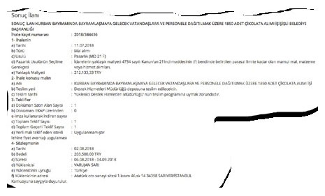İstanbul'un CHP'li belediyelerinden Şişli'de ilginç bir gelişme yaşandı. Belediye, davet usulü gerçekleştirdiği bazı ihalelerde Atatürk Oto Sanayii'ndeki bir tamirciyi muhatap aldı, yaptığı pazarlık sonucunda el sıkıştı. Toplamda 1 milyon TL.'ye varan pazarlık konusu içerisinde çikolata, Türk bayrağı, masa ve sandalye alımı gibi değişik kalemler bulunuyor.