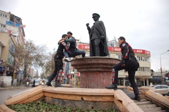 Sosyal medyada paylaşılan bir videoda, Adıyaman’daki Atatürk heykeline saldıran Suriyeli bir mültecinin gösterildiği iddia edildi. Videoda, Suriyeli olduğu iddia edilen kişinin Kapcami Mahallesi Sümer Meydanı’nda bulunan Atatürk heykeline çıktığı ve heykelin omuzlarında oturduğu görülebiliyor.