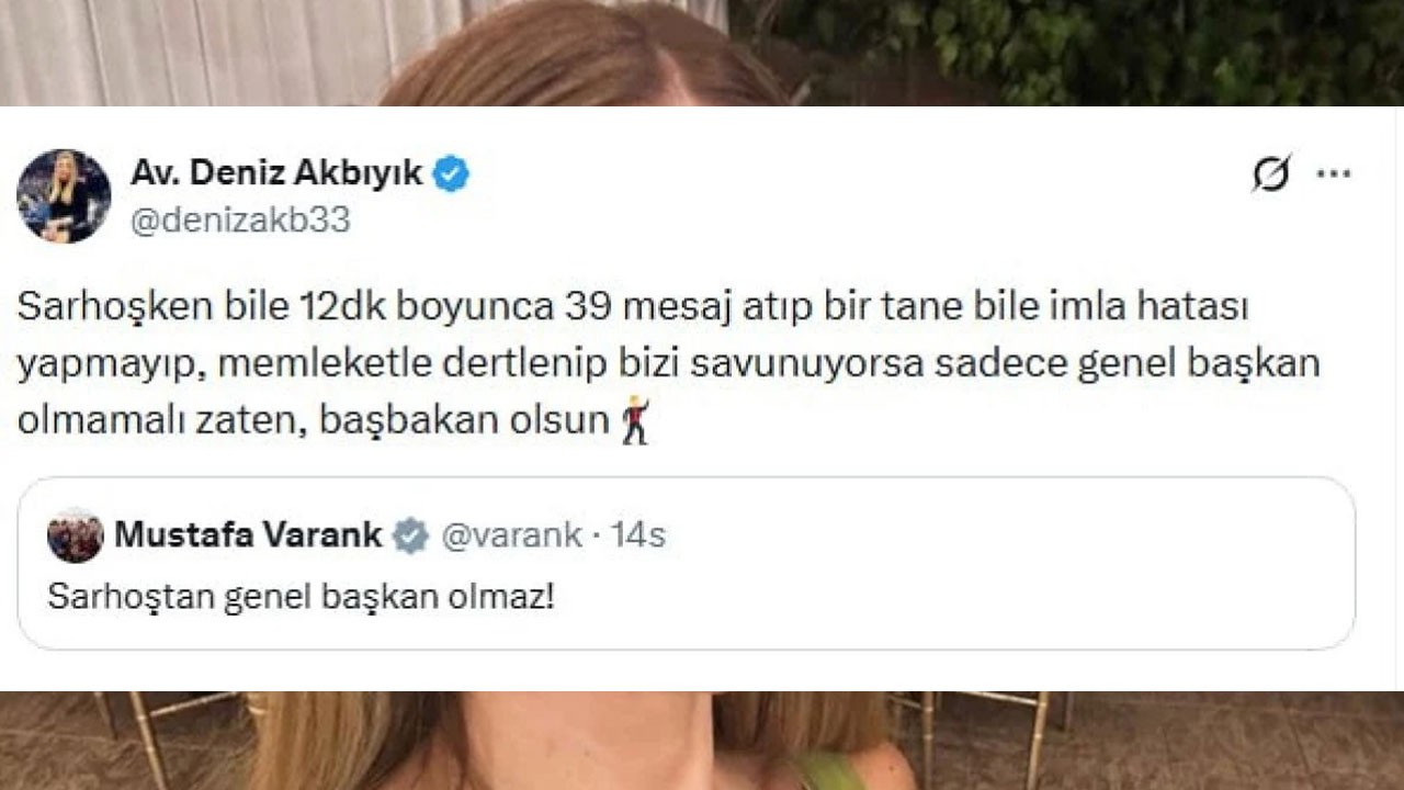 Deniz Akbıyık isimli CHP’li avukat, Özgür Özel’in CHP’den istifa ettiği için Keçiören Belediye Başkanı Mesut Özarslan'a arsızca küfürlerini, “Ama sarhoşken bile imla hatası yapmamış… Başbakan olmalı” diyerek savunmaya kalktı.