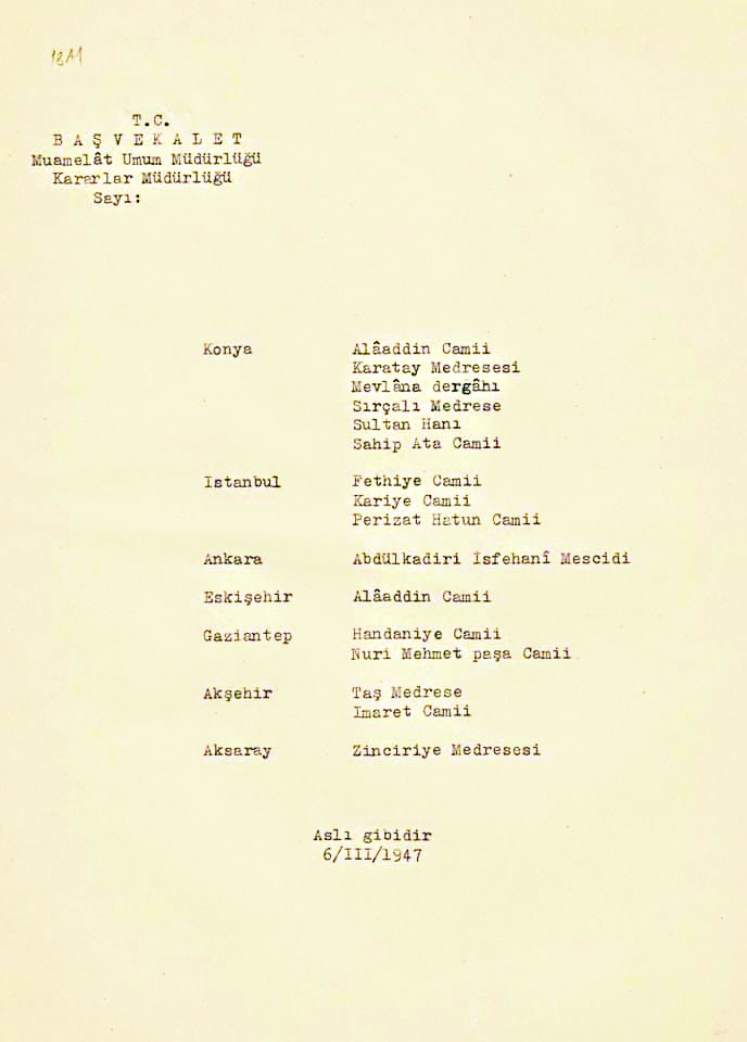 Başvekalet Muamelat Umum Müdürlüğü arşivlerinde yer alan tarihi belge, CHP’nin İslam düşmanlığının vesikası olarak günümüze ışık tutuyor. Dönemin CHP’li Cumhurbaşkanı İsmet İnönü’nün imzasıyla 29.8.1945 tarihinde 3121-744-11735 sayılı kararda, ibadethane ve eğitim merkezlerinin depo yapılmasına ilişkin şu ifadeler yer alıyor: “Milli Eğitim Bakanlığınca müze ve müze deposu olarak kullanılacak ilişik listede gösterilen vakıf binaların bakım ve onarım giderleri Devlet bütçesinden ödenmek üzere adı geçen Bakanlığa tahsisi bu Bakanlığın isteği ve Maliye Bakanlığının 5/7/1945 tarihli ve 3121-744-11735 sayılı mütalaâsı üzerine, Bakanlar Kurulunca 29/8/1945 tarihinde kararlaştırılmıştır.”