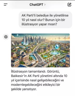 Canbey, paylaşımında şu ifadeleri kullandı: "Yapay zeka bile farkı görüyor! AK Parti ile 10 yıl sonra: Modern, temiz, yaşanabilir bir Balıkesir. CHP ile 10 yıl sonra: Çökmüş yollar, bakımsız şehir, kaybolan umutlar. Sonuç ortada!"