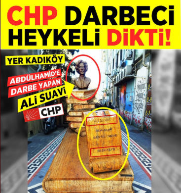 Geçtiğimiz aylarda CHP'li Kadıköy Belediyesi'nin diktiği Ali Suavi heykeli, sosyal medyada duyarlı vatandaşların tepkisine neden olmuştu. Bir darbelere ve darbecilere karşı hiçbir zaman net bir duruş sergileyemeyen CHP'nin bir de darbecilerin heykelini dikmesine tepkiler çığ gibi büyüdü.