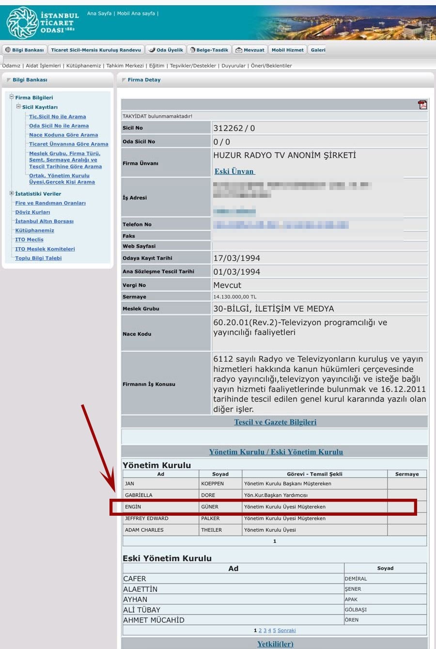 Huzur Radyo TV A.Ş’nin yönetimine daha sonra ilginç bir isim girdi: Engin Güner… Eski siyasilerden Engin Güner, FOX’un resmi ortağı oldu. İstanbul Ticaret Odası kayıtlarına göre Güner, halen televizyonun yönetim kurulunda…