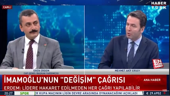 Eren Erdem bugün ise Habertürk kanalında gazeteci Mehmet Akif Ersoy'un canlı yayın konuğu oldu.