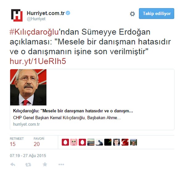 CHP Lideri Kemal Kılıçdaroğlu Mahmut Tanal'ın büyük terbiyesizliği için bugün bir açıklama yaptı. Kılıçdaroğlu Tanal'ın Cumhurbaşkanı'nın mahermiyeti hakkındaki iğrenç sözlerini "danışman hatası" diyerek geçiştirmeye çalıştı. Kılıçdaroğlu "Mesele bir danışman hatasıdır ve o danışmanın işine son verilmiştir" dedi. Ancak Mahmut Tanal'ın çirkin sözlerinin CHP'nin resmi internet sitesinde hâlâ durduğunu görenler "bu nasıl bir ikiyüzlülük" demekten kendisini alamadı.