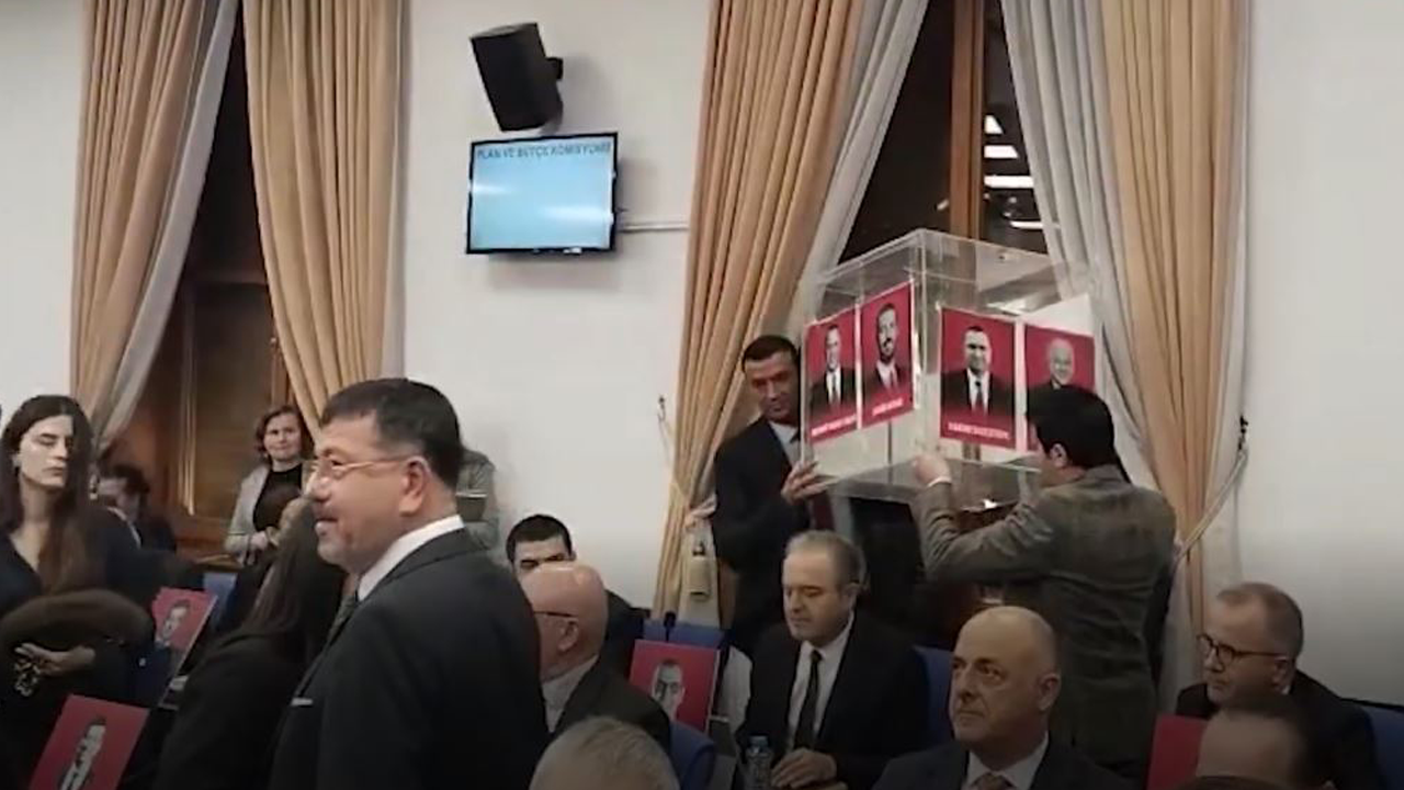 Son olarak, İçişleri Bakanlığı 2026 bütçesinin görüşüldüğü TBMM Plan ve Bütçe Komisyonu’nu tiyatro salonuna çeviren CHP’li vekiller, “Yolsuzluk, usulsüzlük, ihaleye fesat karıştırma, rüşvet, irtikap, kişisel verileri yasa dışı yollardan ele geçirme, casusluk” suçlarından tutuklu olarak yargılanan CHP’li eski İBB Başkanı Ekrem İmamoğlu ve diğer tutuklu CHP’li belediye başkanlarının fotoğraflarının yer aldığı sandığı, İçişleri Bakanlığı Plan ve Bütçe Komisyonu'na getirdi.