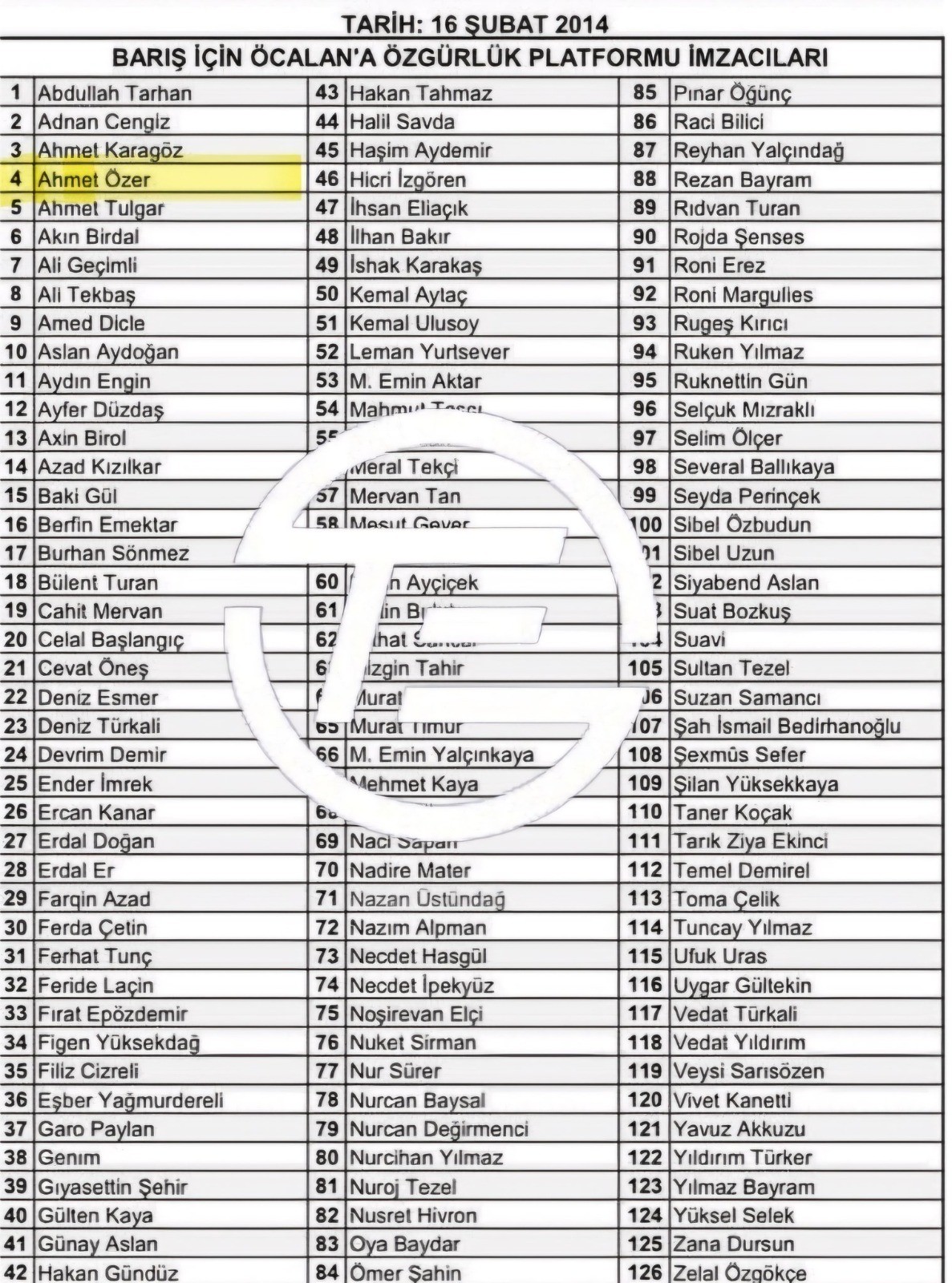 İşte Ekrem İmamoğlu'nun “10 yıllık Cumhuriyet Halk Partili” diyerek CHP seçmenine pazarladığı eski Esenyurt Belediye Başkanı Ahmet Özer'in, 2014 yılında “Barış İçin Öcalan'a Özgürlük Platformu” imzacıları arasında yer aldığı ortaya çıktı.