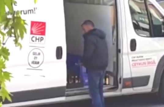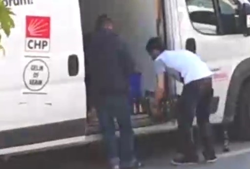 CHP'nin seçim minibüsüne kasa kasa bira yüklenirken çekilen bir video, sosyal medyada ortaya çıktı.
