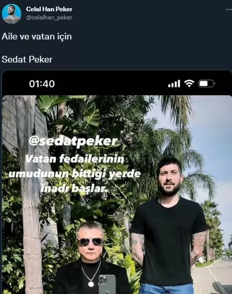 Sedat Peker'in çekimlerini yapan oğlu Celal Han Peker, sosyal medya hesabından tripod, babası Peker ve kendisinin olduğu bir paylaşım yaptı.