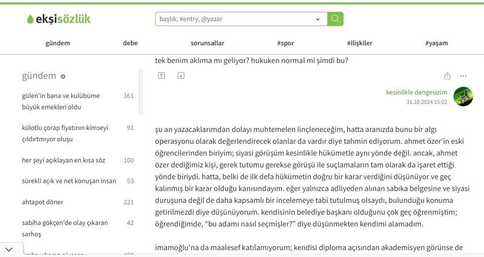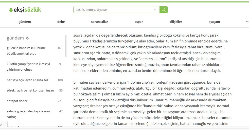 Sosyal medya platformu Ekşi Sözlük’te “kesinlikle dengesizim” kullancı adıyla itirafta bulunan ve CHP’li Ahmet Özer’in bir dönem öğrencisi olan vatandaş ve ilk defa hükümetin doğru bir Karar verdiğini ifade eden vatandaş, Özer’e yönelik ibretlik açıklamalarda bulundu.