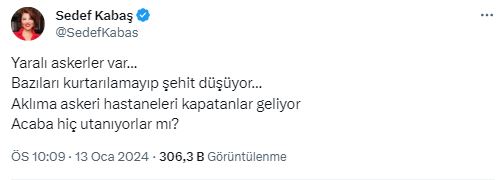 Kabaş, "Yaralı askerler var… Bazıları kurtarılamayıp şehit düşüyor… Aklıma askeri hastaneleri kapatanlar geliyor. Acaba hiç utanıyorlar mı?" sözleriyle göz göre göre aleni bir şekilde yalan söyledi.