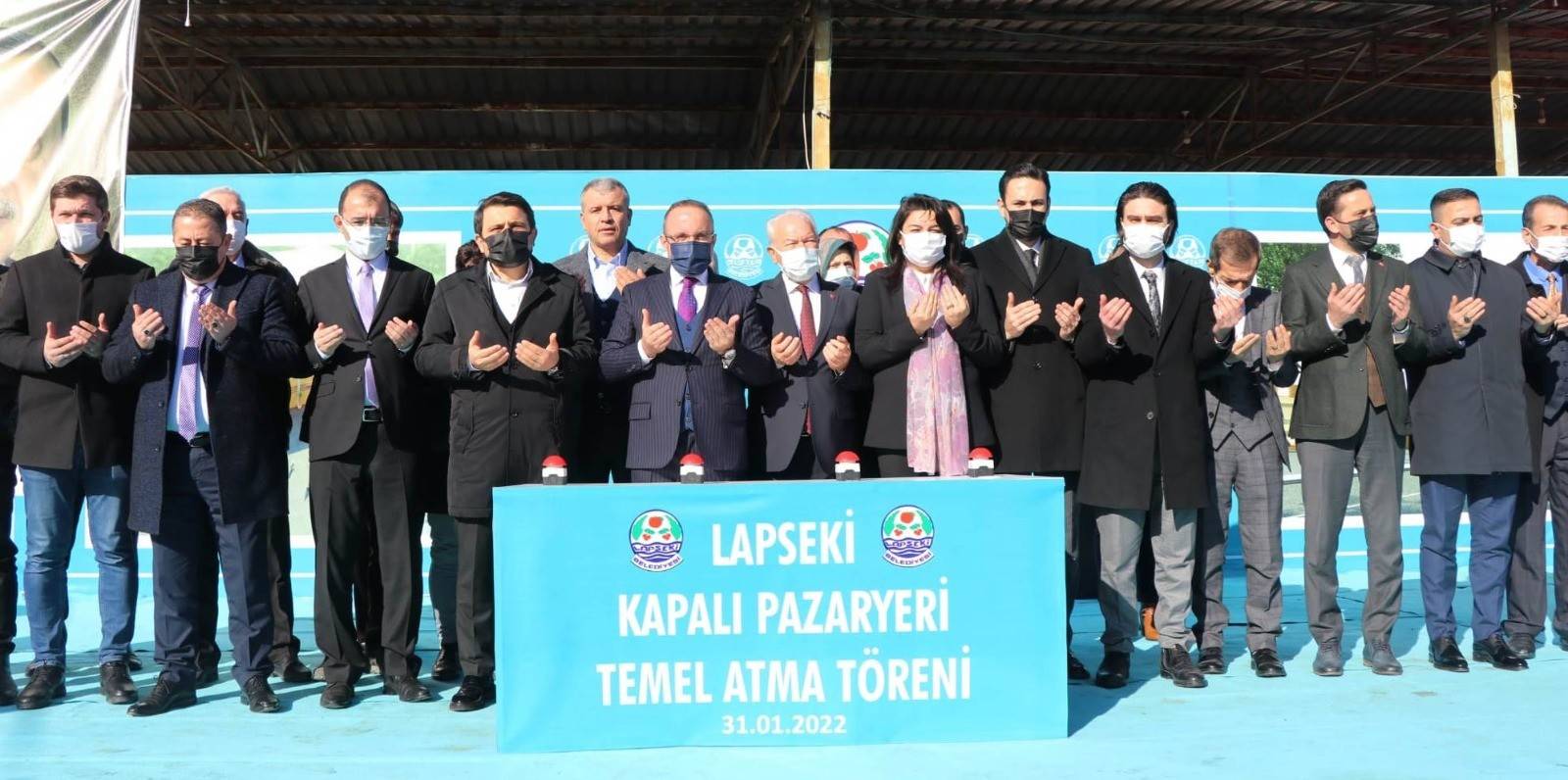 Konuşmaların ardından dualar eşliğinde Lapseki kapalı pazar yerinin temel atma töreni gerçekleştirildi.