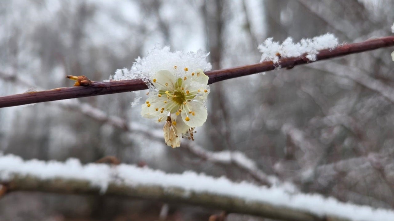 Yozgat’ta mevsim normallerinin üzerinde seyreden sıcaklıkların ardından çiçek açan erik ağaçları aniden bastıran karla birlikte sıra dışı görüntüler oluşturdu.
