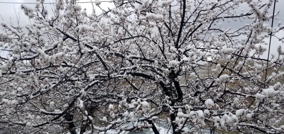 Erzincan’da nisan ayında yağan kar, çiçek açan meyve ağaçlarını kar altında bırakırken, zirai don olayı vatandaşı korkutuyor.