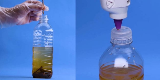 Çivileri bu suya ekleyin ve birkaç dakika batmalarını bekleyin. Suyun yavaş yavaş renk değiştirmeye başlayacağını göreceksiniz.